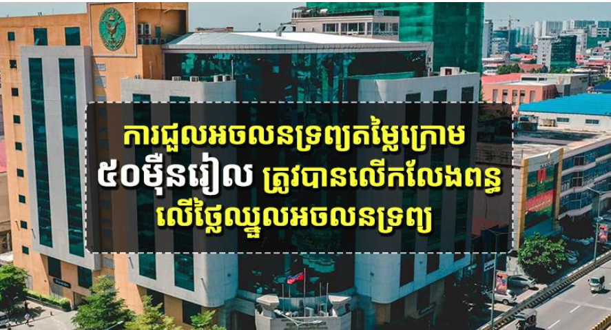 ការជួលអចលនទ្រព្យតម្លៃក្រោម ៥០ម៉ឺនរៀល ត្រូវបានលើកលែងពន្ធលើថ្លៃឈ្នួលអចលនទ្រព្យ |