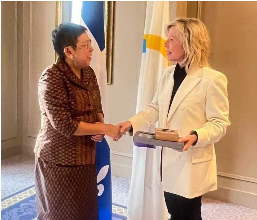 លោកស្រីបណ្ឌិតសភាចារ្យ ភឿង សកុណា រដ្ឋមន្ត្រីក្រសួងវប្បធម៌ និងវិចិត្រសិល្បៈ បានអញ្ជើញចូលរួម «សន្និសីទរដ្ឋមន្ត្រីវប្បធម៌ហ្វ្រង់កូហ្វូនីលើកទី៥ “5e Conference des Ministres de la Culture de la Francophonie”» ដែលបានប្រព្រឹត្តិទៅចាប់ពីថ្ងៃទី២២-២៤ ខែឧសភា ឆ្នាំ២០២៥ នៅទីក្រុងកេប៊ិច ប្រទេសកាណាដា។