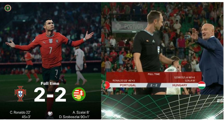ស្ថិតក្នុងការប្រកួត ២គ្រាប់របស់ Ronaldo គឺធ្វើបាននៅនាទី២២ និងនាទី៤៥+៣ ក្រោយក្រុមហុងគ្រីស៊ុតនាំមុខដោយកីឡាករ Attila Szalai ទើបលេងបាន ៨នាទី ក្នុងវគ្គទី១ ខណៈកីឡាករខ្សែបម្រើ Dominik Szoboszlai ជាអ្នកនាំក្រុមហុងគ្រី ចែកគ្នាម្នាក់បាន ១ពិន្ទុ ក្រោយការស៊ុតបានសម្រេចនៅនាទី៩០+១ ។