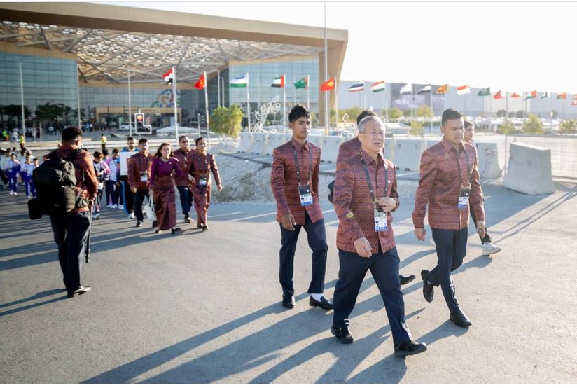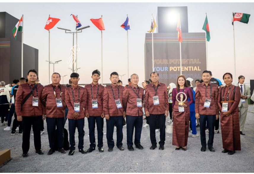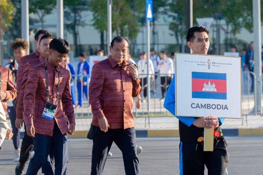 លោកបណ្ឌិត ថោង ខុន ទេសរដ្ឋមន្ដ្រី ប្រធានគណៈកម្មាធិការជាតិអូឡាំពិកកម្ពុជា(NOCC) និងជាប្រធានប្រតិភូកីឡាកម្ពុជា កាលពីល្ងាចថ្ងៃអង្គារកន្លងទៅ បានដឹកនាំប្រតិភូ និងអត្តពលិកកម្ពុជាមួយចំនួន ចូលរួមពិធីបង្ហូតទង់ជាតិ ដើម្បីបង្ហាញពីការចូលរួមផ្លូវការ ក្នុងព្រឹត្តិការណ៍កីឡាយុវជនអាស៊ី លើកទី៣ នៅទីក្រុងម៉ាណាម៉ា ប្រទេសបារ៉ែន មុនពិធីបើកផ្លូវការ ដែលនឹងប្រារព្ធធ្វើឡើងនាល្ងាចថ្ងៃទី២២ ខែតុលា ឆ្នាំ២០២៥។