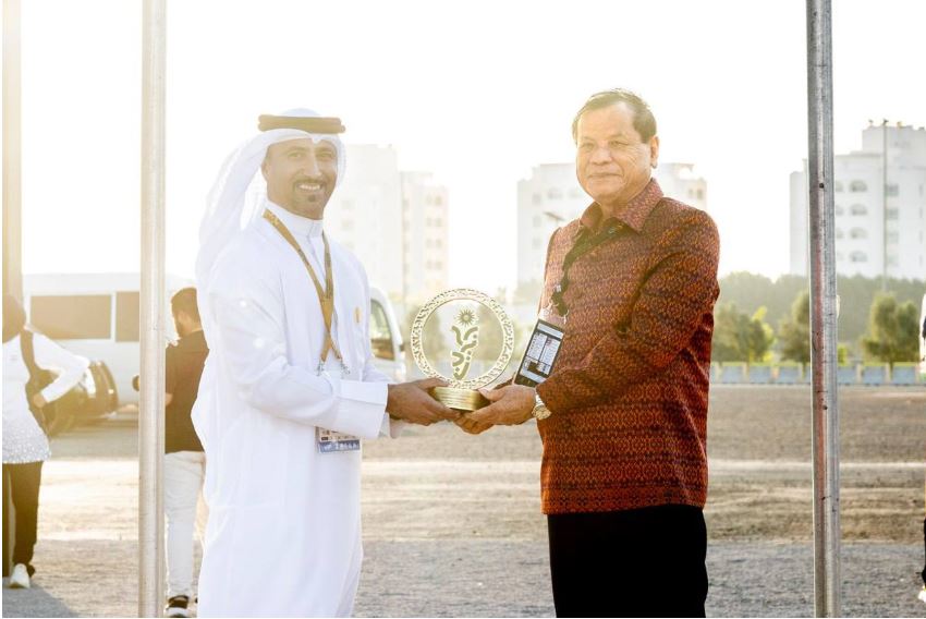 រាជធានីភ្នំពេញ៖ពិធីបង្ហូតទង់ជាតិនេះ បានធ្វើឡើងនៅ Beyon AL Dana Amphitheatre ក្រោមការរៀបចំរបស់ម្ចាស់ផ្ទះបារ៉ែន ដើម្បីបង្ហាញការស្វាគមន៍ និងផ្ដល់វត្ថុអនុស្សាវរីយ៍ ដល់ថ្នាក់ដឹកនាំប្រតិភូ និងអត្តពលិកគ្រប់បណ្ដាប្រទេស ដែលបានចូលរួមព្រឹត្តិការណ៍កីឡាយុវជនប្រចាំទ្វីប ៤ឆ្នាំម្ដងនេះ ចាប់ពីថ្ងៃទី២២-៣១ ខែតុលាខាងមុខ ខណៈប្រតិភូកីឡាកម្ពុជា ត្រូវបានដឹកនាំចូលរួមកម្មវិធីដោយលោកបណ្ឌិត ថោង ខុន ដើម្បីបង្ហាញពីការចូលរួមផ្លូវការរបស់ប្រតិភូ គ្រូបង្វឹក និងកីឡាករ-កីឡាការិនីកម្ពុជា។