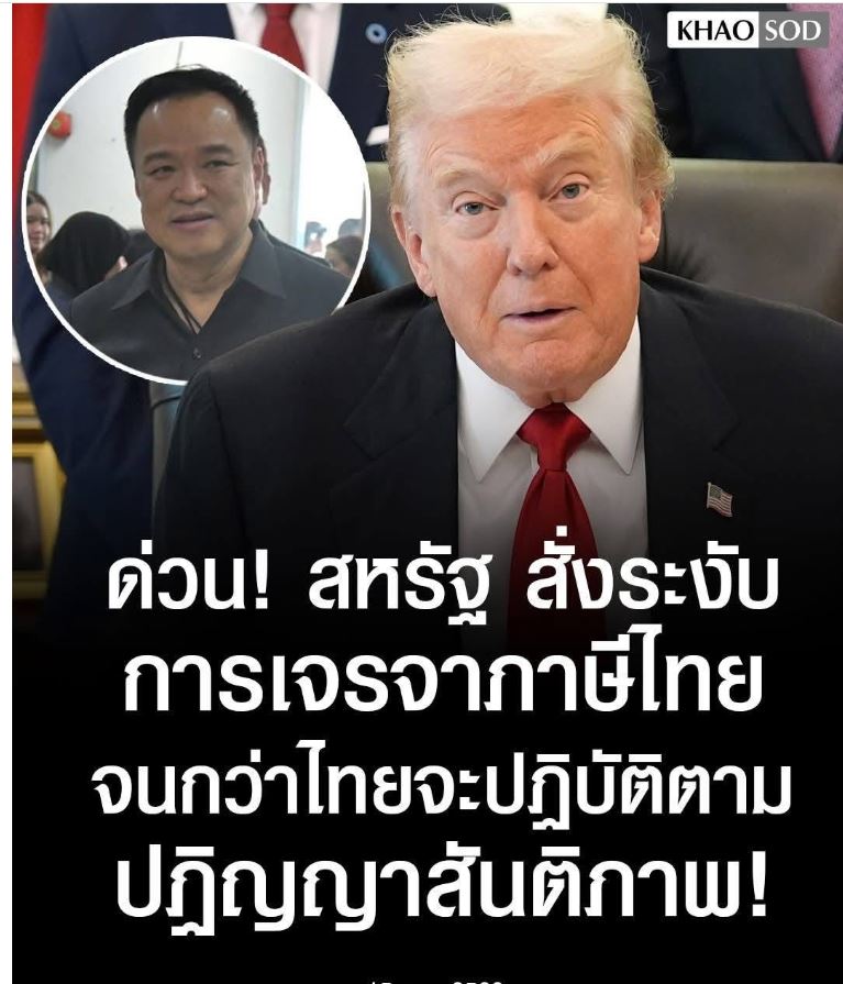 គួរបញ្ជាក់ថា នាយករដ្ឋមន្ត្រីថៃ លោក Anutin Charnvirakul កាលពីប៉ុន្មានថ្ងៃមុននេះបានអះអាងថា ថៃនឹងមិនខ្វល់ជាមួយសហរដ្ឋអាមេរិកនឹងយកពន្ធគយកម្រិតណាពីថៃនោះទេ ហើយថាលោកនឹងធ្វើអ្វីៗដើម្បីផលប្រយោជន៍សម្រាប់ថៃ៕