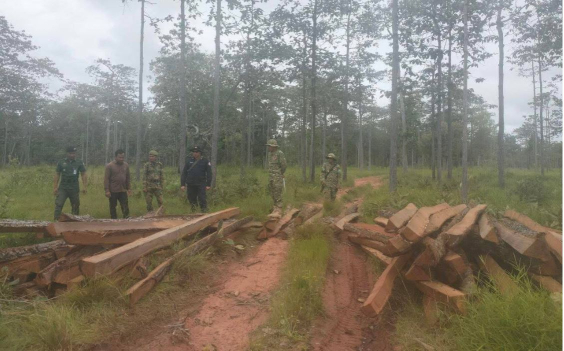 | មន្ដ្រីឧទ្យានុរក្ស និងគណៈបញ្ជាការឯកភាពស្រុកលំផាត់ ប្រទះឃើញឈើជន្លង់ម្រេច៧០កន្ទុយ ដែលជនល្មើសកាប់ទុកចោលនៅក្នុងព្រៃ |