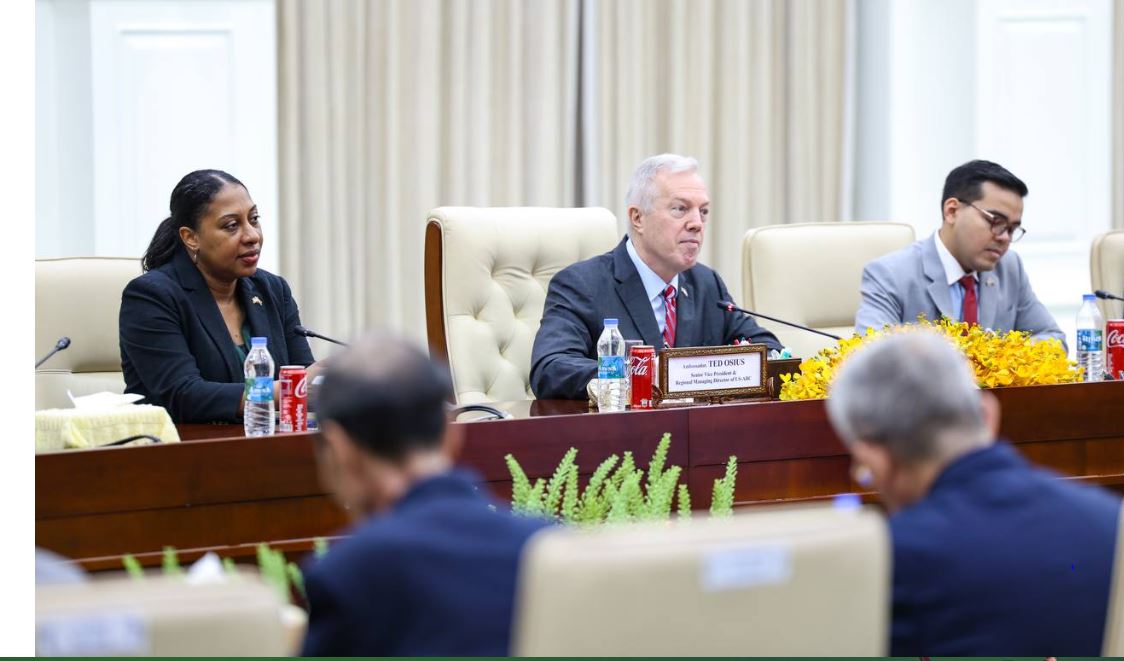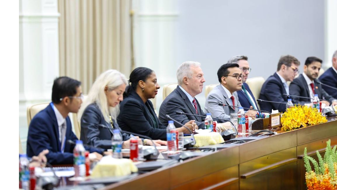 រាជធានីភ្នំពេញ៖នៅព្រឹកថ្ងៃអង្គារ ទី២ ខែធ្នូ ឆ្នាំ២០២៥នេះ សម្តេចមហាបវរធិបតី ហ៊ុន ម៉ាណែត នាយករដ្ឋមន្ត្រីកម្ពុជា អនុញ្ញាតឱ្យគណៈប្រតិភូក្រុមប្រឹក្សាធុរកិច្ចសហរដ្ឋអាមេរិក-អាស៊ាន (USABC) ដឹកនាំដោយឯកអគ្គរដ្ឋទូត Ted Osius អនុប្រធាន និងនាយកគ្រប់គ្រងប្រចាំតំបន់នៃ USABC ជួបសម្តែងការគួរសម និងពិភាក្សាការងារ នៅវ
