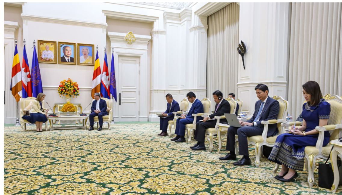 រាជធានីភ្នំពេញ៖នៅព្រឹកថ្ងៃអង្គារ ទី២ ខែធ្នូ ឆ្នាំ២០២៥នេះ សម្តេចមហាបវរធិបតី ហ៊ុន ម៉ាណែត នាយករដ្ឋមន្ត្រីកម្ពុជា អនុញ្ញាតឱ្យគណៈប្រតិភូក្រុមប្រឹក្សាធុរកិច្ចសហរដ្ឋអាមេរិក-អាស៊ាន (USABC) ដឹកនាំដោយឯកអគ្គរដ្ឋទូត Ted Osius អនុប្រធាន និងនាយកគ្រប់គ្រងប្រចាំតំបន់នៃ USABC ជួបសម្តែងការគួរសម និងពិភាក្សាការងារ នៅវ
