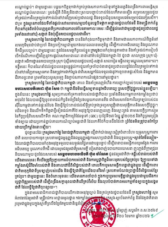 ខាងក្រោមនេះ ជាសេចក្ដីប្រកាសព័ត៌មានរបស់ក្រសួងមហាផ្ទៃ៖