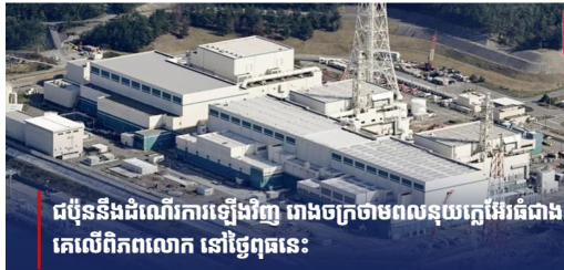 | ជប៉ុននឹងដំណើរការឡើងវិញ រោងចក្រថាមពលនុយក្លេអ៊ែរធំជាងគេលើពិភពលោក នៅថ្ងៃពុធនេះ |