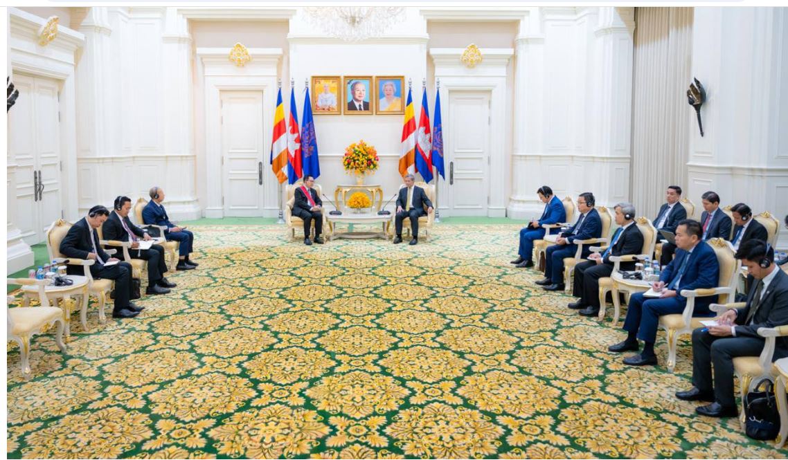 នាព្រឹកថ្ងៃទី២៦ ខែមករា ឆ្នាំ២០២៦នេះ សម្តេចមហាបវរធិបតី ហ៊ុន ម៉ាណែត នាយករដ្ឋមន្ត្រីនៃកម្ពុជា បានអនុញ្ញាតឲ្យលោកបណ្ឌិត Linkham Douangsavanh រដ្ឋមន្ត្រីក្រសួងកសិកម្ម និងបរិស្ថាន នៃសាធារណរដ្ឋប្រជាធិបតេយ្យប្រជាមានិតឡាវ ចូលជួបសម្តែងការគួរសម និងពិភាក្សាការងារ នៅវិមានសន្តិភាព។