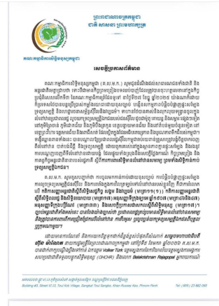 សេចក្តីជូនដំណឹង បានឲ្យដឹងថា យោងច្បាប់ស្តីពីអាកាសចរណ៍ស៊ីវិលនៃព្រះរាជាណាចក្រកម្ពុជា បទប្បញ្ញត្តិបច