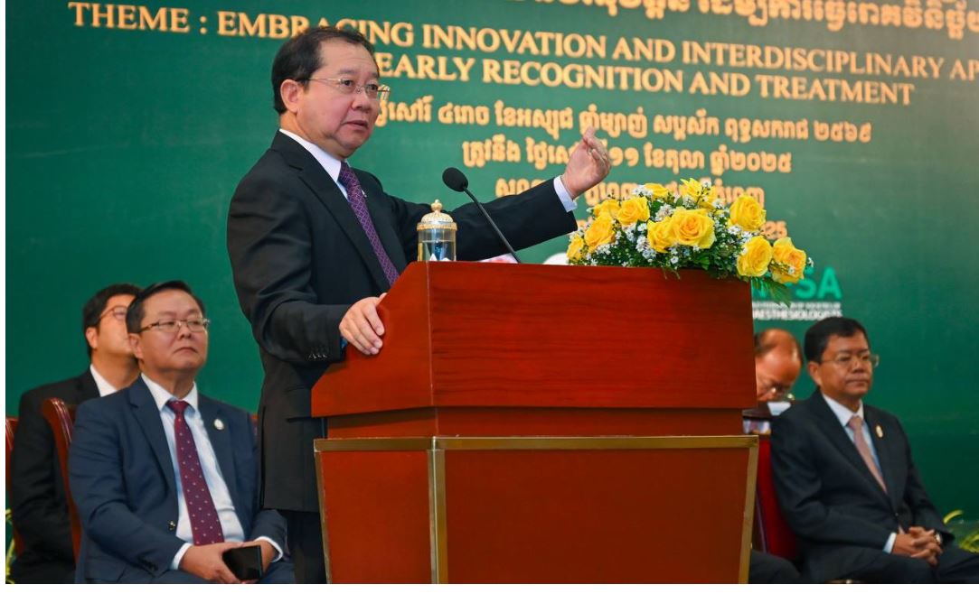 រាជធានីភ្នំពេញ៖រថ្លែងយ៉ាងដូច្នេះរបស់លោកសាស្ដ្រាចារ្យរដ្ឋមន្ដ្រី ក្នុងឱកាសអញ្ជើញជាអធិបតីក្នុងពិធីសន្និសីទប្រចាំឆ្នាំលើកទី២៩ របស់សមាគមសណ្តំ ប្រពោធនកម្ម និងសង្គ្រោះបន្ទាន់កម្ពុជា និងលើកទី២២ របស់សមាគមគិលានុបដ្ឋាកឯកទេសសណ្តំ និងសង្គ្រោះបន្ទាន់កម្ពុជាក្រោមប្រធានបទ៖ «ការងារពហុជំនាញប្រកបដោយនវានុវត្តន៍ ដើម្បីការធ្វើរោគវិនិច្ឆ័យ និងព្យាបាលទាន់ពេលវេលា» នាថ្ងៃទី១១ ខែតុលា ឆ្នាំ២០២៥។