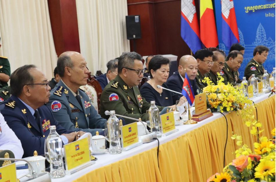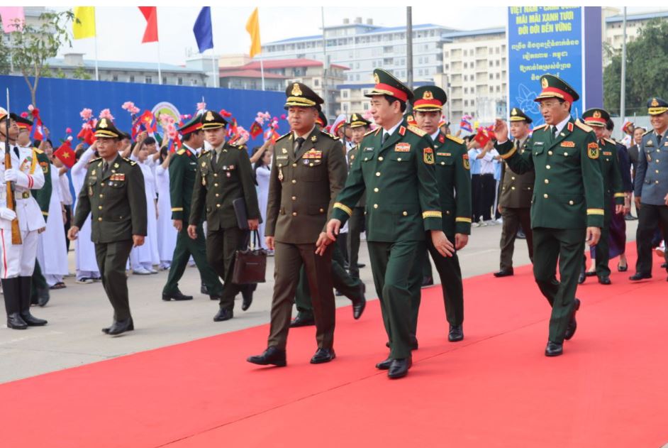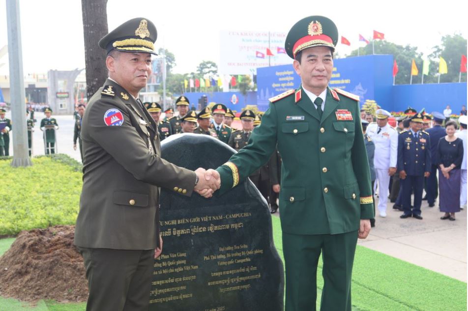 នាយឧត្តមសេនីយ៍ ទៀ សីហា ឧបនាយករដ្ឋមន្ត្រី រដ្ឋមន្ត្រីក្រសួងការពារជាតិ និងនាយឧត្តមសេនីយ៍ ហ្វាន វ៉ាន់ យ៉ាង រដ្ឋមន្រ្តីក្រសួងការពារប្រទេសវៀតណាម បានអញ្ជើញចូលរួមប្រជុំថ្នាក់រដ្ឋមន្ត្រី ការពារជាតិប្រទេសលើកទី២ និងចូលរួមលំហាត់សុខាភិបាលរួមគ្នានៅច្រកព្រំដែនអន្តរជាតិម៉ុកបាយ ខេត្តតៃនិញ នៅថ្ងៃទី១៣ -១៤ ខែវិច្ឆិកា ឆ្នាំ២០២៥។