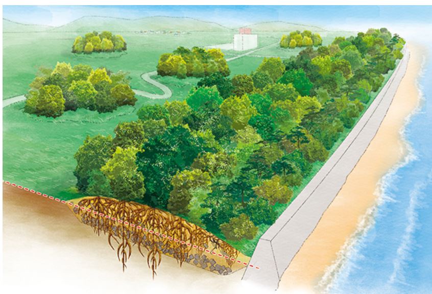 បន្ទាប់ពីរលកយក្សស៊ូណាមិឆ្នាំ២០១១ ប្រទេសជប៉ុនបានសាងសង់ជញ្ជាំងបេតុងសមុទ្រប្រវែង ៣៩៥ គីឡូម៉ែត្រឆ្លងកាត់ឆ្នេរសមុទ្រភាគឦសានរបស់ខ្លួន ដែលជាតំបន់ការពារឆ្នេរសមុទ្រដ៏ធំបំផុតមួយរបស់ពិភពលោក។ ជាមួយគ្នានេះ ដើមរាប់លានដើមត្រូវបានដាំ ដើម្បីស្តារព្រៃឈើដែលបានបាត់បង់ និងបង្កើតជារបាំងធម្មជាតិ ការពារនឹងរលកនាពេលអនាគត។