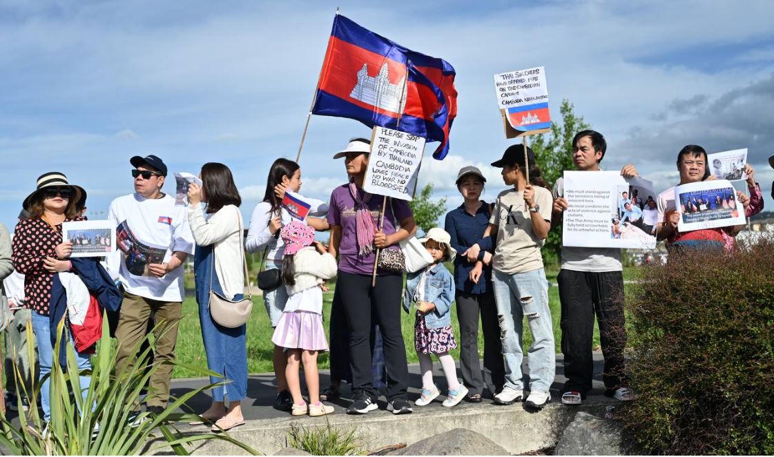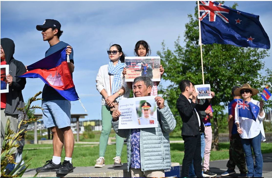 នូវ៉ែលហ្សេឡង់៖ ប្រជាពលរដ្ឋខ្មែរដែលកំពុងរស់នៅប្រទេសនូវ៉ែលហ្សេឡង់ ចំនួនប្រមាណជាង ២០០នាក់ នៅ ថ្ងៃអាទិត្យ ទី១៦ ខែវិច្ឆិកា ឆ្នាំ២០២៥ (ម៉ោងនៅនូវ៉ែលហ្សេឡង់) បានរួមគ្នាប្រមូលផ្តុំគ្នានៅសួនច្បារ Barry Curtis Park ក្នុង ទីក្រុងអូកឡិន (Auckland) ដើម្បីធ្វើបាតុកម្មសម្តែងមតិ និងថ្កោលទោសយ៉ាងដាច់អហង្ការចំពោះសកម្មភាពប