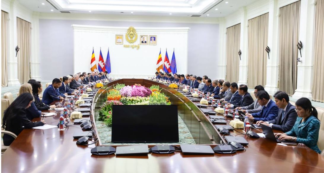 រាជធានីភ្នំពេញ៖នៅព្រឹកថ្ងៃអង្គារ ទី២ ខែធ្នូ ឆ្នាំ២០២៥នេះ សម្តេចមហាបវរធិបតី ហ៊ុន ម៉ាណែត នាយករដ្ឋមន្ត្រីកម្ពុជា អនុញ្ញាតឱ្យគណៈប្រតិភូក្រុមប្រឹក្សាធុរកិច្ចសហរដ្ឋអាមេរិក-អាស៊ាន (USABC) ដឹកនាំដោយឯកអគ្គរដ្ឋទូត Ted Osius អនុប្រធាន និងនាយកគ្រប់គ្រងប្រចាំតំបន់នៃ USABC ជួបសម្តែងការគួរសម និងពិភាក្សាការងារ នៅវ
