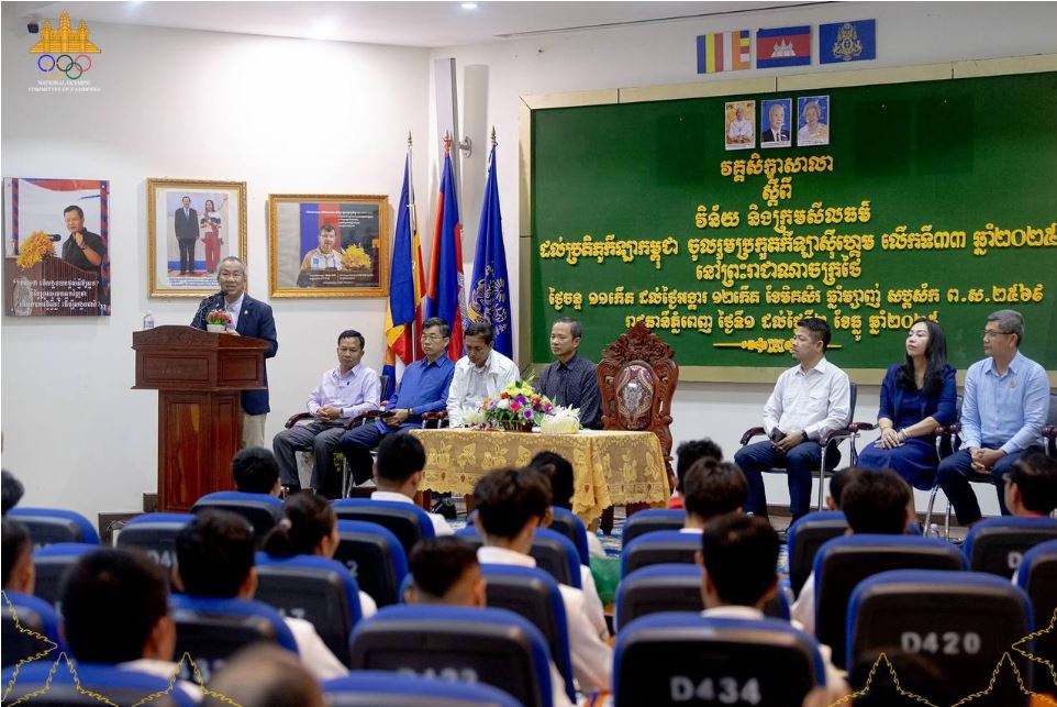 លោក យាន គីស៊ីវត្ថា ប្រធានមជ្ឈមណ្ឌលជាតិហ្វឹកហ្វឺនកីឡា បានបញ្ជាក់ថា សិក្ខាសាលាស្ដីពី “វិន័យ និងក្រមសីលធម៍” នេះ មានគ្រូឧទ្ទេស ៤នាក់ និងមាន ១២ប្រភេទកីឡាចូលរួម គឺមានកីឡាហែលទឹក អត្តពលកម្ម អេឡិចត្រូនិក គុនដាវ កាយសម្ព័ន្ធ ជីជីតស៊ូ ឃីតបុកស៊ីង តេក្វាន់ដូ-WT ជិះសេះ ម៉ូតូទឹក ទ្រីយ៉ាត្លុង និងកីឡាបាល់ទាត់លើតុ ដែលមានសិក្ខាកាមសរុបចំនួន ៧៥នាក់ចូលរួម ដោយផ្តោតសំខាន់លើប្រតិភូកីឡា គ្រូបង្វឹក គ្រូជំនួយ កីឡាករ-កីឡាការិនី ដែលត្រៀមចេញទៅប្រកួតកីឡាស៊ីហ្គេម លើកទី៣៣ ឆ្នាំ២០២៥ នៅថៃ នាសប្ដាហ៍ក្រោយ៕
