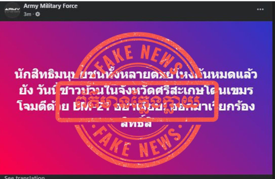 ក្រសួងការពារជាតិកម្ពុជា បានច្រានចោលចំពោះការផ្សព្វផ្សាយរបស់ផេក Army Military Force Amarin News កងទ័ពភូមិភាគទី២ និង Army Military Force គឺជាព័ត៌មានក្លែងក្លាយ បំភ្លៃកាពិត។