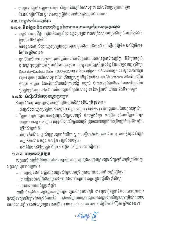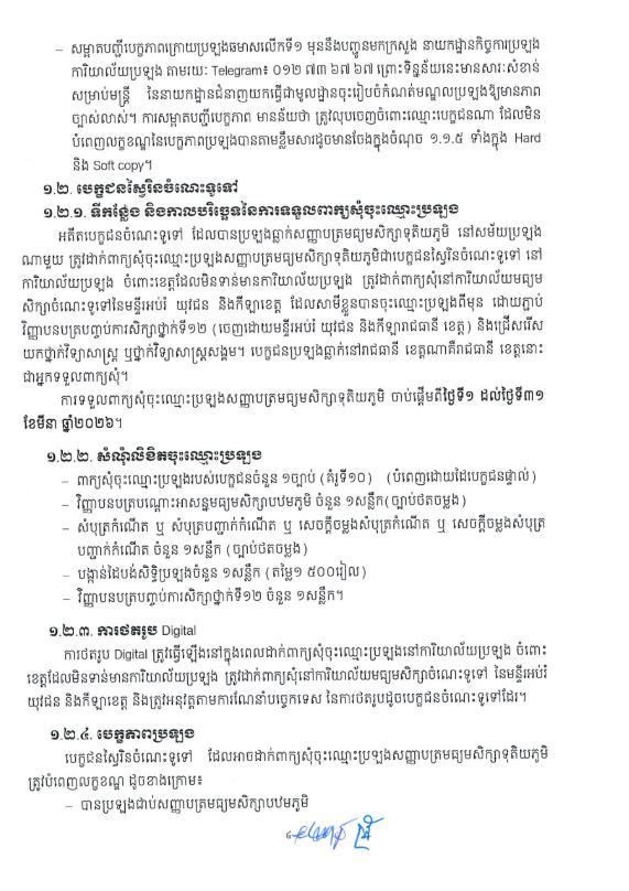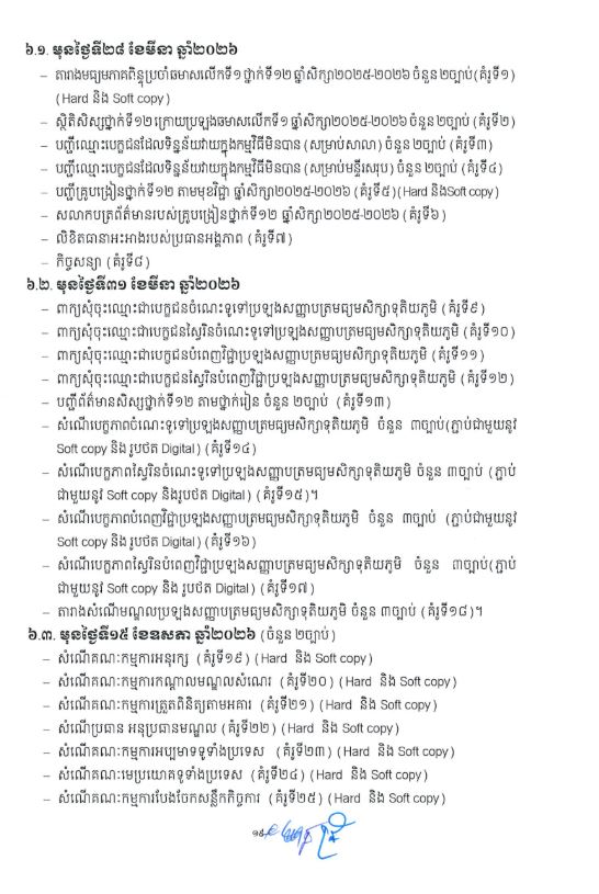 | ក្រសួងអប់រំ ចេញសេចក្តីណែនាំស្តីពីការរៀបចំ និងការប្រព្រឹត្តទៅនៃការប្រឡងសញ្ញាបត្រមធ្យមសិក្សាទុតិយភូមិសម្រាប់ឆ្នាំសិក្សា ២០២៥-២០២៦ |