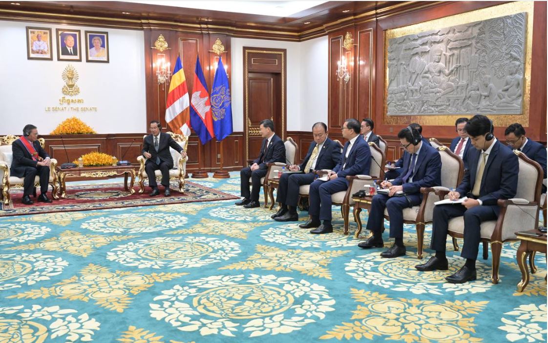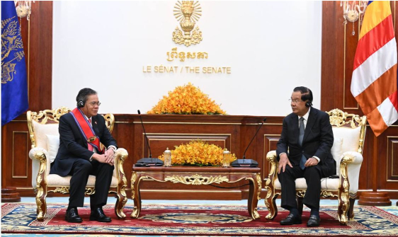 រាជធានីភ្នំពេញ៖ សម្តេចតេជោ ហ៊ុន សែន ប្រធានព្រឹទ្ធសភានៃកម្ពុជា នៅព្រឹកថ្ងៃទី២៦ ខែមករា ឆ្នាំ២០២៦នេះ បានអនុញ្ញាតឱ្យលោក Santo Darmosumarto ឯកអគ្គរដ្ឋទូតនៃសាធារណរដ្ឋឥណ្ឌូណេស៊ី ប្រចាំកម្ពុជា ចូលជួបសម្តែងការគួរសម និងជម្រាបលា នៅវិមានសាមគ្គីភាព រាជធានីភ្នំពេញ៕