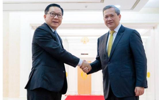 នាព្រឹកថ្ងៃទី២៦ ខែមករា ឆ្នាំ២០២៦នេះ សម្តេចមហាបវរធិបតី ហ៊ុន ម៉ាណែត នាយករដ្ឋមន្ត្រីនៃកម្ពុជា បានអនុញ្ញាតឲ្យលោកបណ្ឌិត Linkham Douangsavanh រដ្ឋមន្ត្រីក្រសួងកសិកម្ម និងបរិស្ថាន នៃសាធារណរដ្ឋប្រជាធិបតេយ្យប្រជាមានិតឡាវ ចូលជួបសម្តែងការគួរសម និងពិភាក្សាការងារ នៅវិមានសន្តិភាព។