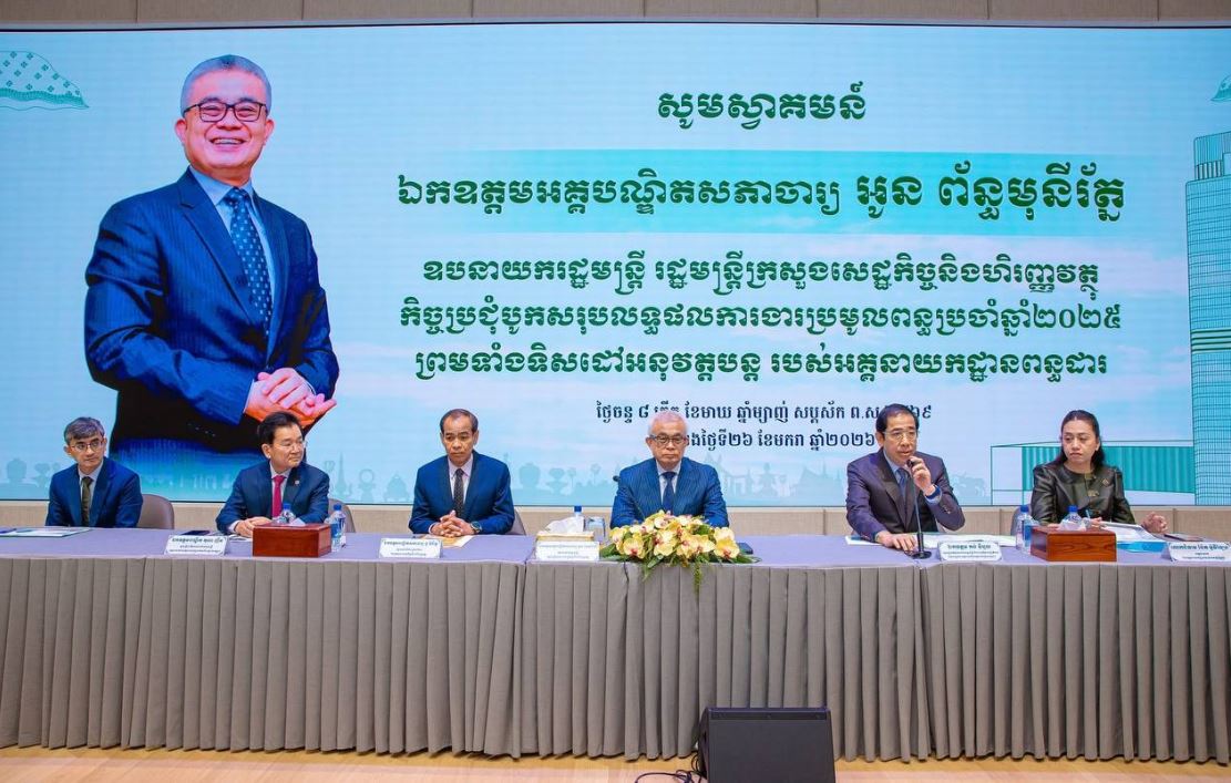 របាយការណ៍នៃការប្រមូលចំណូលពន្ធដារឆ្នាំ២០២៥ ត្រូវបានបង្ហាញក្នុងកិច្ចប្រជុំបូកសរុបលទ្ធផលការងារ ប្រមូលចំណូលពន្ធប្រចាំឆ្នាំ២០២៥ ព្រមទាំងទិសដៅអនុវត្តបន្តរបស់អគ្គនាយកដ្ឋានពន្ធដារ ក្រោមអធិបតីភាពអគ្គបណ្ឌិតសភាចារ្យ អូន ព័ន្ធមុនីរ័ត្ន ឧបនាយករដ្ឋមន្ដ្រី រដ្ឋមន្ត្រីក្រសួងសេដ្ឋកិច្ច និងហិរញ្ញវត្ថុ នៅអគារអគ្គនាយកដ្ឋានពន្ធដារថ្មី (Tax Tower) ដែលស្ថិតនៅតំបន់ជ្រោយចង្វារ។