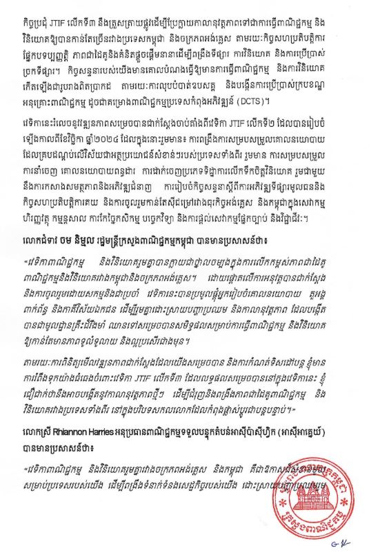 | កម្ពុជា-អង់គ្លេស ពង្រឹងភាពជាដៃគូសេដ្ឋកិច្ច នៅក្នុងវេទិកាពាណិជ្ជកម្ម និងវិនិយោគរួមគ្នា លើកទី៣ |