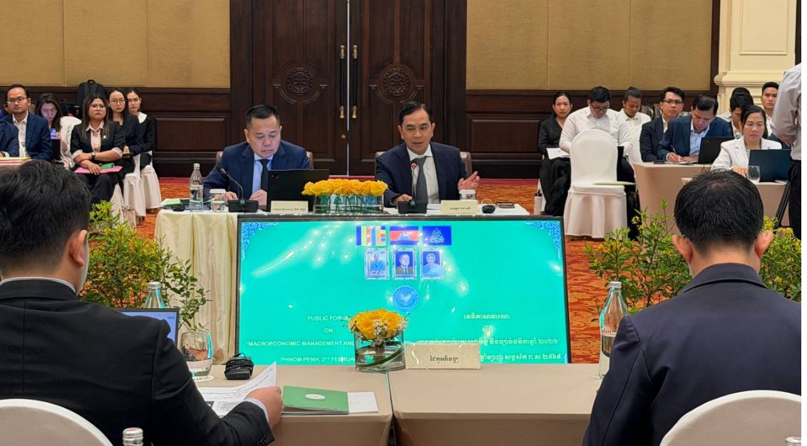 រាជធានីភ្នំពេញ៖ក្រសួងសេដ្ឋកិច្ច និងហិរញ្ញវត្ថុ នៅព្រឹកថ្ងៃទី២ ខែកុម្ភៈ ឆ្នាំ២០២៦ បានរៀបចំវេទិកាសាធារណៈ ស្តីពី ការគ្រប់គ្រងម៉ាក្រូសេដ្ឋកិច្ច និងច្បាប់ថវិកាជាតិឆ្នាំ២០២៦ នៅសណ្ឋាគារសូហ្វីតែល ភូគីត្រា ភ្នំពេញ។