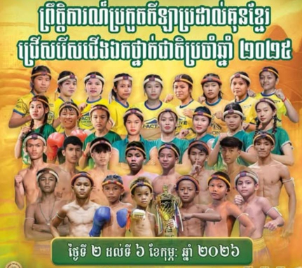 រាជធានីភ្នំពេញ៖ព្រឹត្តិការណ៍ដ៏ធំប្រចាំឆ្នាំមួយនេះ ដំណើការទៅបានដោយមានការគាំទ្រពីក្រសួងអប់រំ យុវជន និងកីឡា សហព័ន្ធកីឡាប្រដាល់គុនខ្មែរ និងក្រោមការជួយឧបត្ថម្ភពីក្រុមហ៊ុន វឌ្ឍនៈ ដែលនឹងចាប់ផ្តើមប្រកួតពីថ្ងៃទី០២ រហូតដល់ថ្ងៃទី០៦ ខែកុម្ភៈ ឆ្នាំ២០២៦ នៅទីតាំងសួនច្បារក្រុងតាខ្មៅ ខេត្តកណ្ដាល ចា